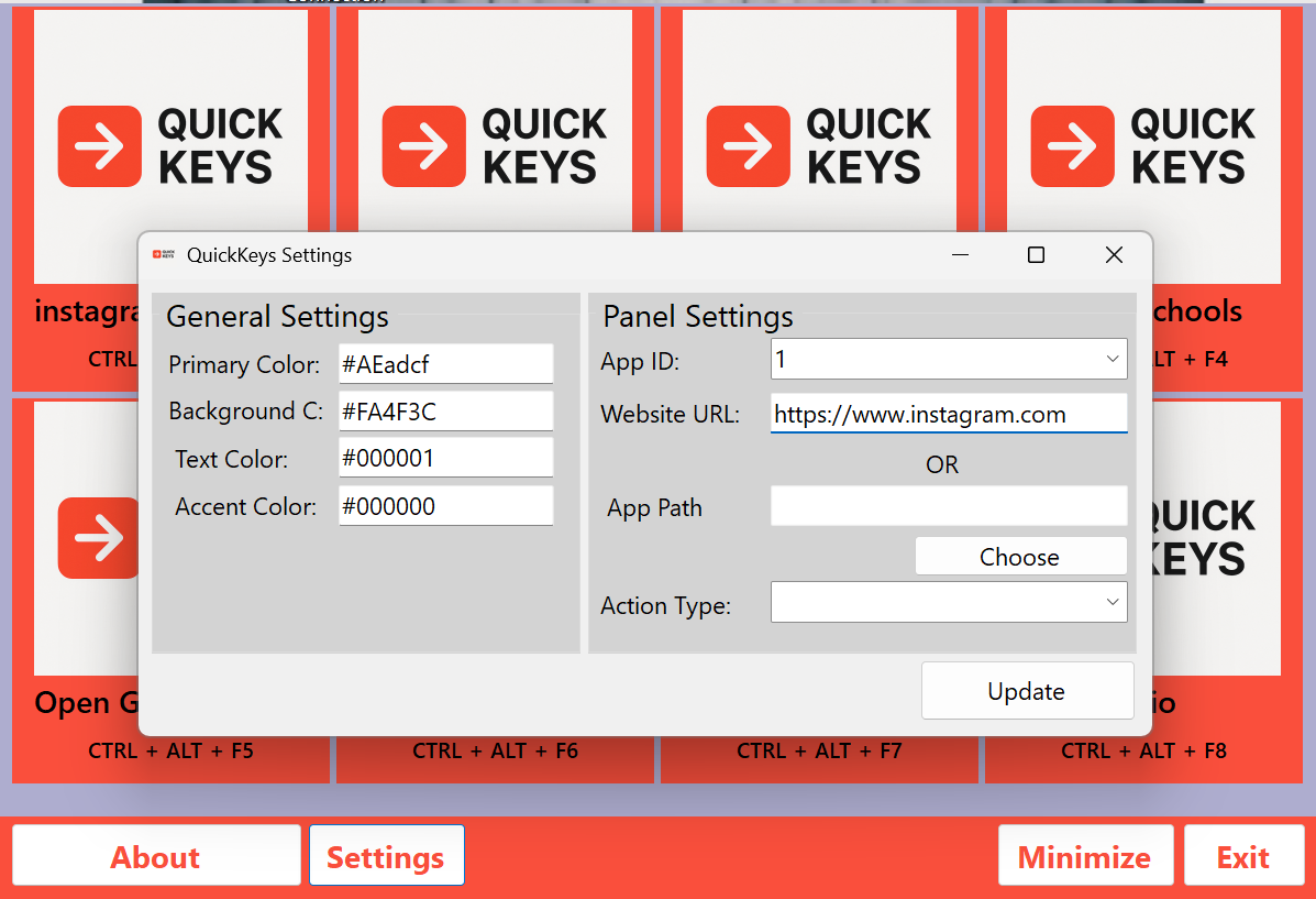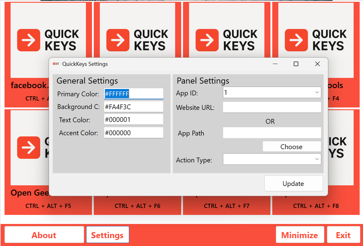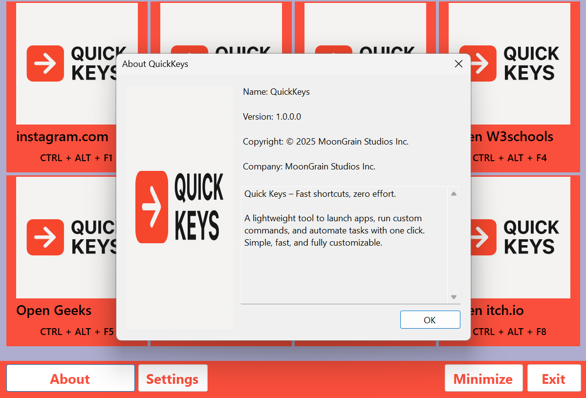 Quick Keys is a fast, minimal, and fully customizable shortcut launcher for Windows.